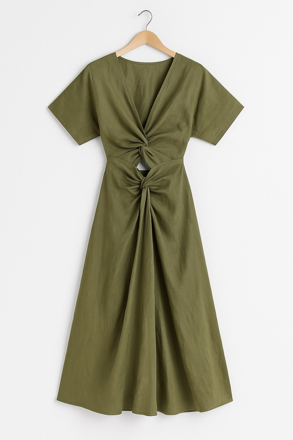 Completo gonna lunga e blusa corta, misto lino, TG. M, verde scuro